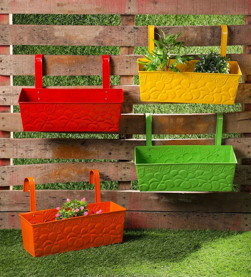 Set Of Four 18” Flower Embossed Rectangle Planters