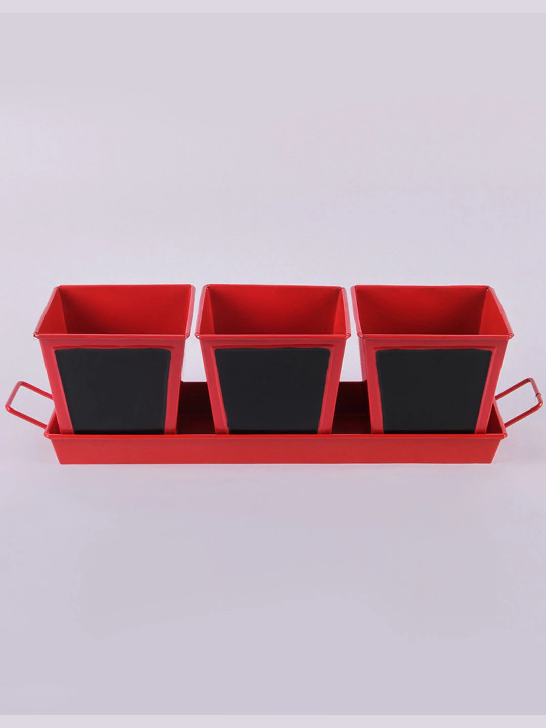 Set Of Three Chalk Board Painted Herb Pots Red