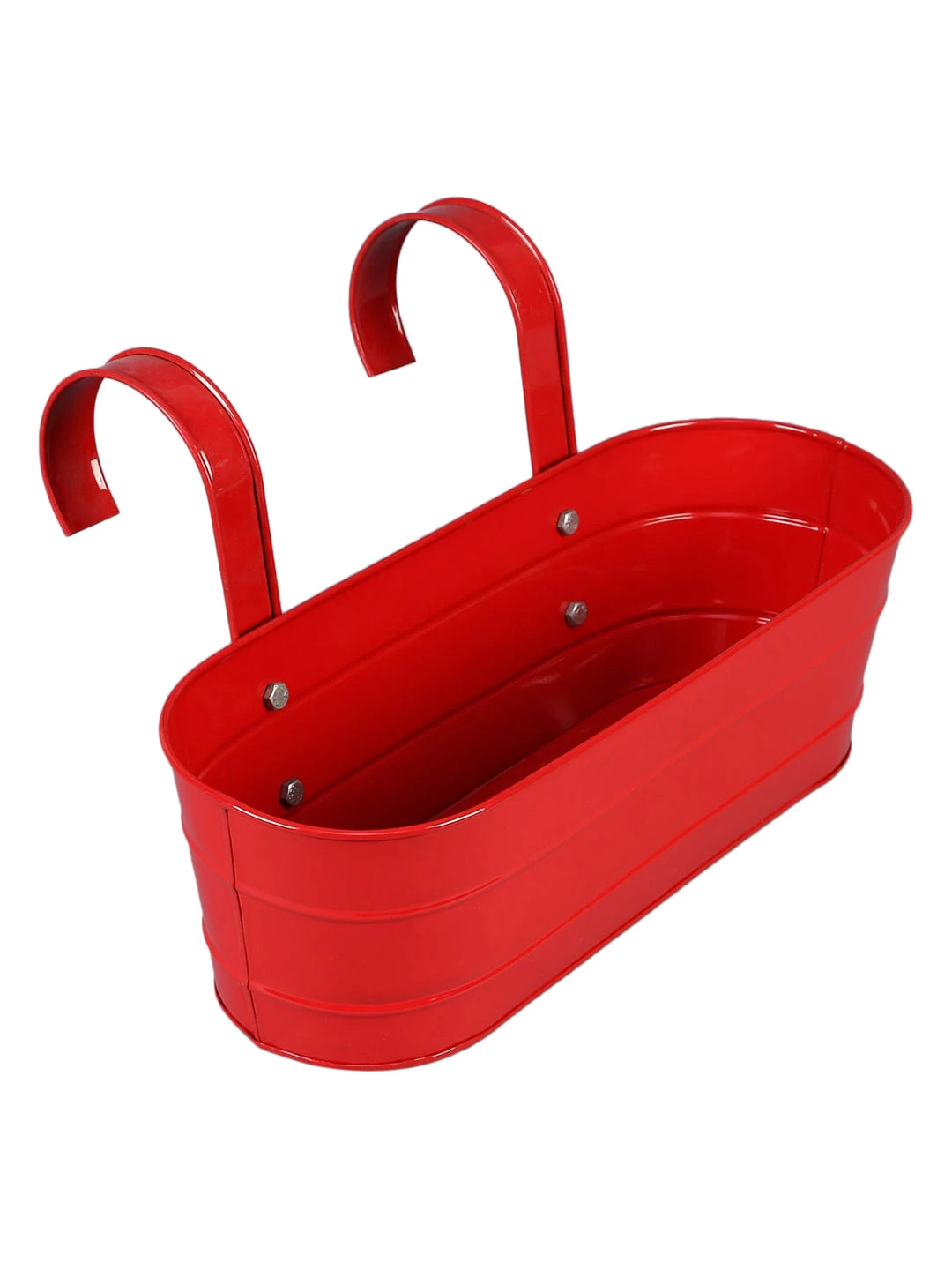 Set Of Two Oval Railing Planter Large Yellow & Red