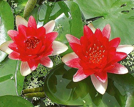 Graceful and elegant, water lilies are a wonderful addition to any water garden. Water lily is a popular ornamental plant widely grown for their beautiful flower blooms in ponds. Water lilies is a perennial plant that often form dense colonies. The leaves arise on flexible stalks from large thick rhizomes. The leaves are more round than heart-shaped, bright green.The showy, fragrant, solitary flowers are borne at or above the water surface. Each flower has a spiral arrangement of its numerous petals.